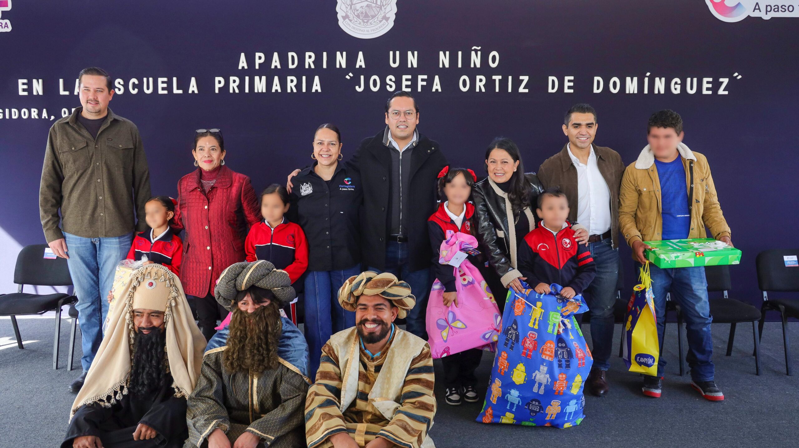 El presidente municipal de Corregidora, Chepe Guerrero, encabezó junto con integrantes de su Gabinete y regidores la entrega de ropa y juguetes a niñas y niños de la escuela primaria Josefa Ortiz de Domínguez, ubicada en la comunidad de El Progreso, como parte del programa “Apadrina un Niño”, organizado por segundo año consecutivo por el Sistema Municipal DIF Corregidora.