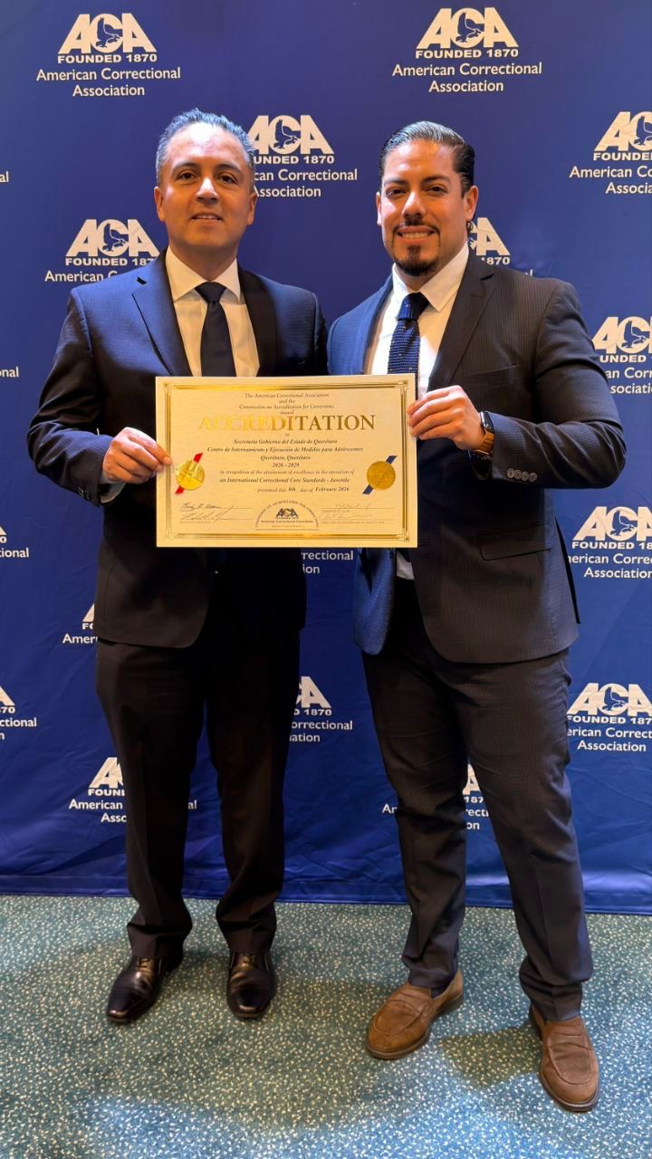 La Secretaría de Gobierno del estado de Querétaro informó que, por cuarta ocasión, el Centro de Internamiento de Ejecución y Medidas para Adolescentes recibió la certificación internacional de la Asociación Americana de Correccionales (ACA), correspondiente al periodo 2026–2029.